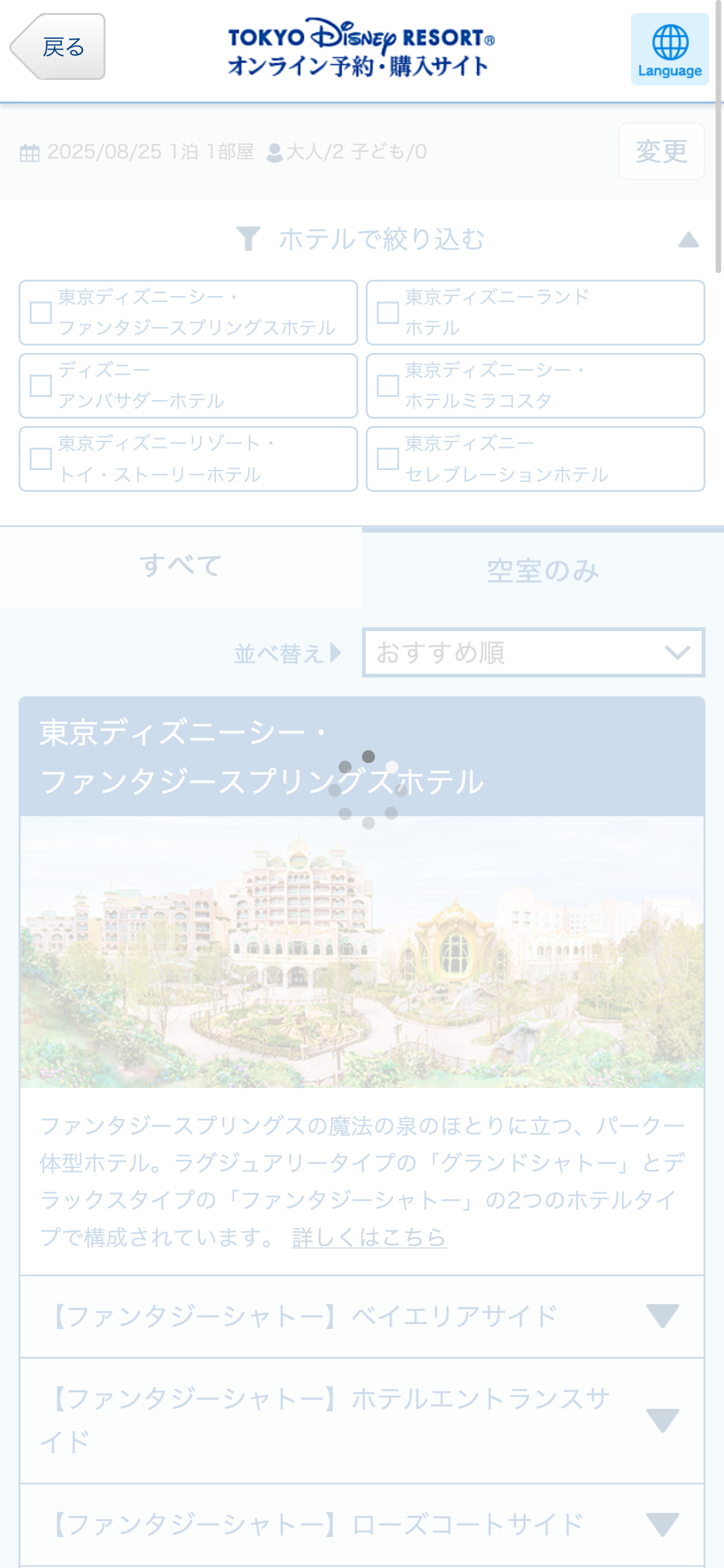 • クルクル、🌀:空き状況一覧画面が無限にクルクルして終わらない状態のこと(裏でエラーしているがエラーメッセージが表示されない状態)